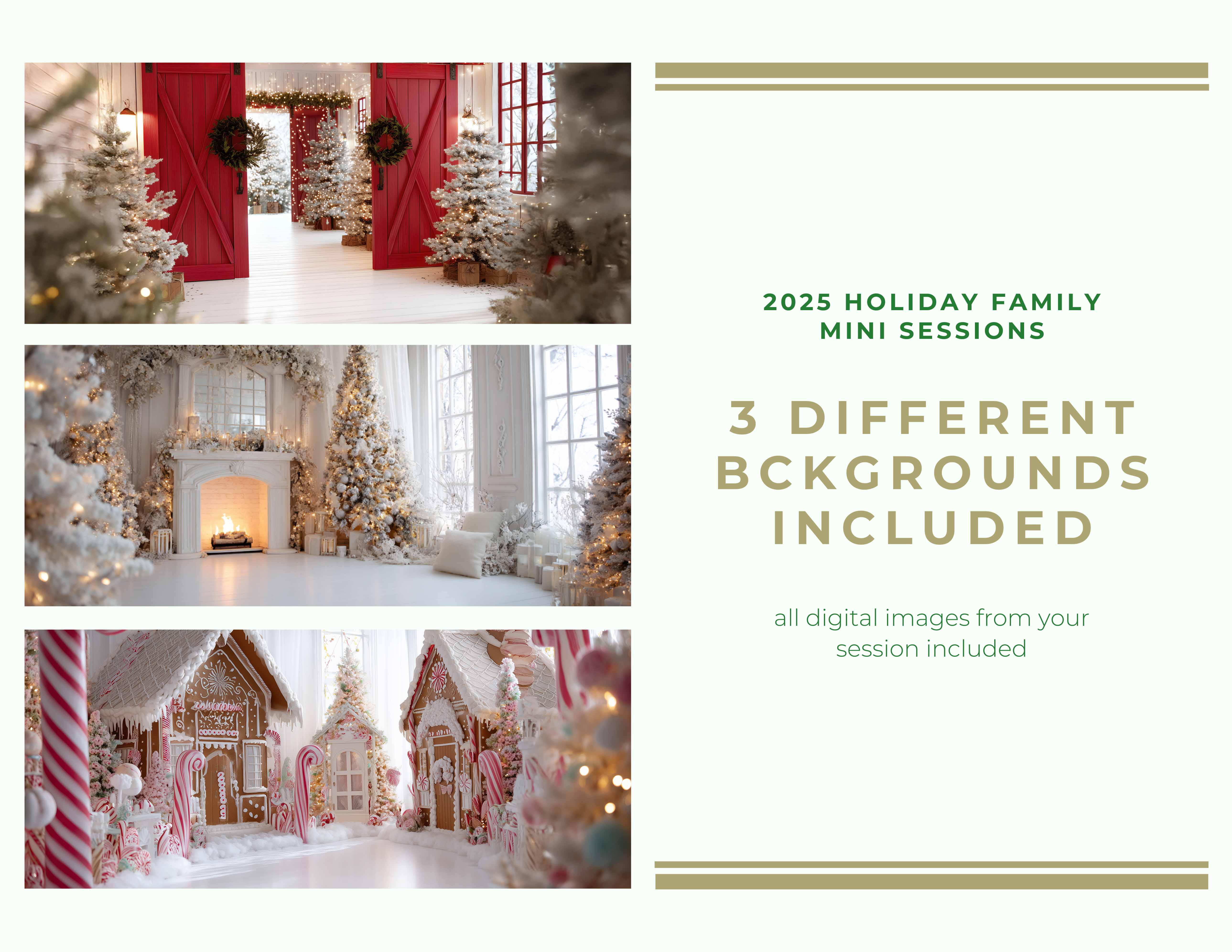 Reserve your spot today and let us capture the magic of your family’s holiday season! 🎁📸 Check out the three backgrounds we will be using below !